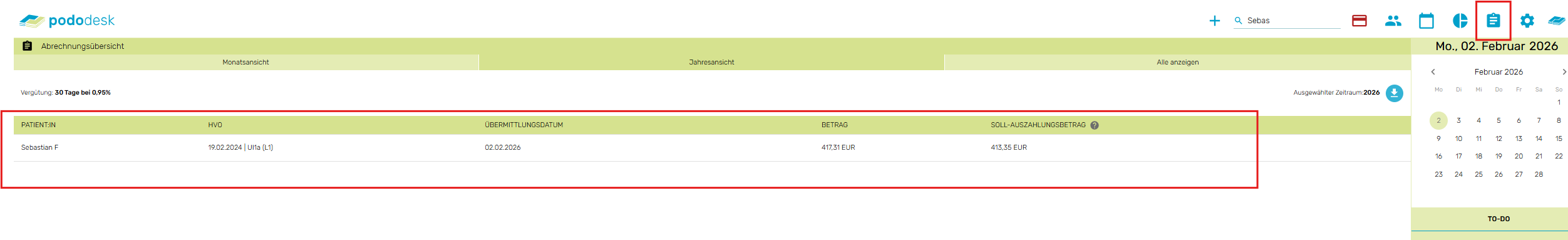 6. Eine Abrechnungsübersicht in pododesk können Sie hier einsehen: